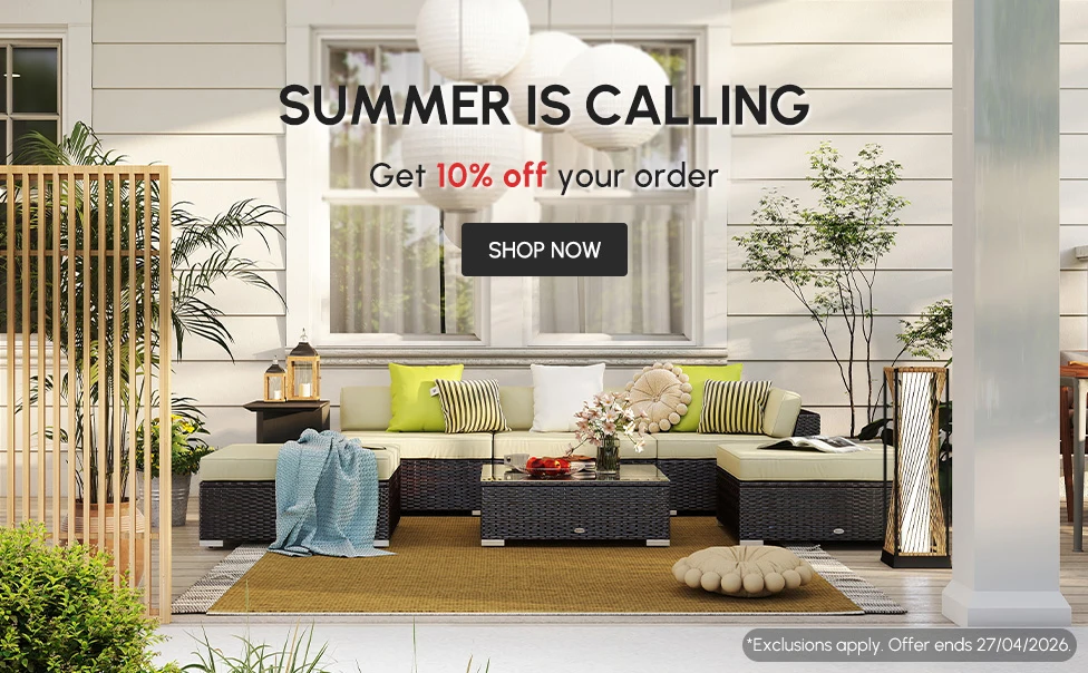 Create the perfect outdoor retreat with our awning for shade, a stylish garden dining table for al fresco meals, and a cozy lounger bed for ultimate relaxation. Whether it's a sunny brunch or a lazy afternoon, your garden will become the go-to spot for comfort and style.