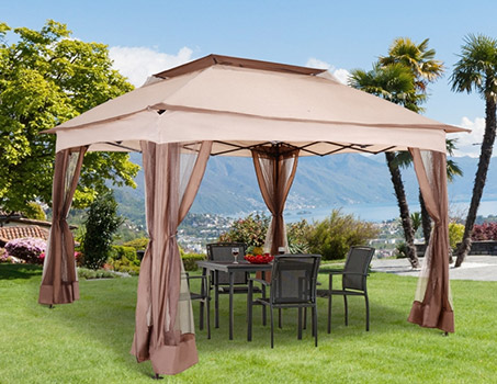Outsunny 3 x 3 m Garden Gazebo Double Roof Marquee Patio Wedding Party Tent Canopy Shelter with Sidewalls (Brown)