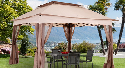 Outsunny 3 x 3(m) Patio Gazebo Canopy Garden Pavilion Tent Shelter with 2 Tier Roof and Mosquito Netting, Steel Frame, Coffee