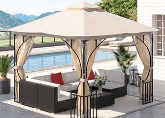 Outsunny Replacement Gazebo Curtains, 4-Panel Gazebo Side Panels Only, for 3 x 3 (M) Gazebos or Pergolas, Hooks/C-Rings Included, Beige