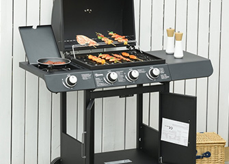 Outsunny Garden Dining Table Glass Top Metal Frame with Parasol Hole Outdoor Balcony Grey 120L x 80Wcm