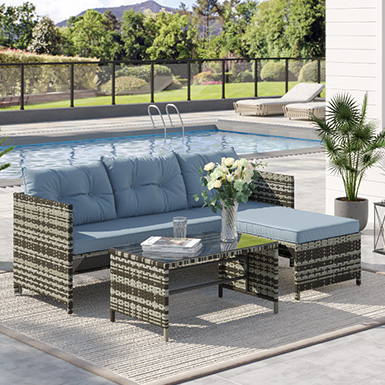Outsunny 3 Seater All Weather Outdoor Sofa, Garden Rattan Sofa with Cushions and Mental Frame, Grey