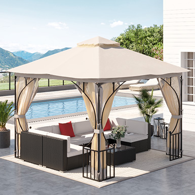 Outsunny 4 Pack Replacement Gazebo Curtains Privacy Panel for Most 3 x 4m Gazebo Canopy Pavillion Outdoor Shelter Sidewalls Accessories Beige
