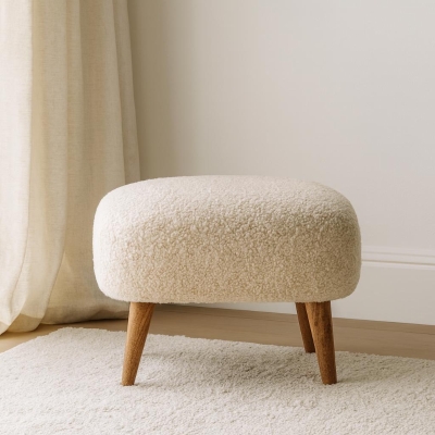 Solid Mango Wood Bouclé Square Footstool with Space-Saving Profile, Upholstered Footstool with Nordic Slim Legs, 40L x 40W x 35H cm, Brown