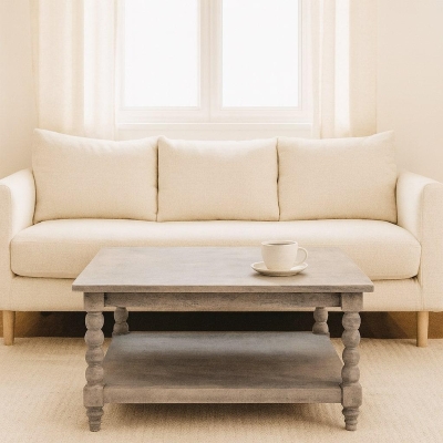 Solid Mango Wood Coffee Table with Open Storage Slot, Side Table with Durable Hand-Finished Circular Design, 80L x 80W x 45H cm, Beige