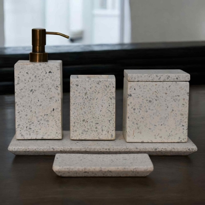 5-Piece Marble Bathroom Accessory Set with Timeless Design, Hand-finished Artisan Pieces with Versatile Styling, 7.5L x 7.5W x 19H cm, White
