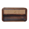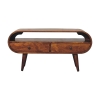 Solid Mango Wood Curved Media Unit with 2 Drawers and Open Shelf, Eco-Conscious TV Unit with Lemon Scent, 35L x 90W x 47H cm, Brown