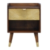 Solid Mango Wood Curved-Edge Rattan Bedside Table with 2 Drawers, Bedside Cabinet with Open Shelf, 40L x 50W x 60H cm, Brown