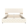 Modern Bed Frame with Wide Button-Tufted Headboard, Integrated LED Lighting, Bed Base with USB-C Ports, 209L x 221W x 103H cm, Beige