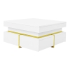 High-Gloss Coffee Table with Gold Accents and Drawers, Tea Table Perfect for Living Rooms and Apartments, 70L x 70W x 35.5H cm, White