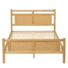 4ft6 Double Bed with Natural Timber Finish and MDF Back Panel, Upholstered Bed with Sturdy Plywood Slats, 199L x 142W x 98H cm, Natural