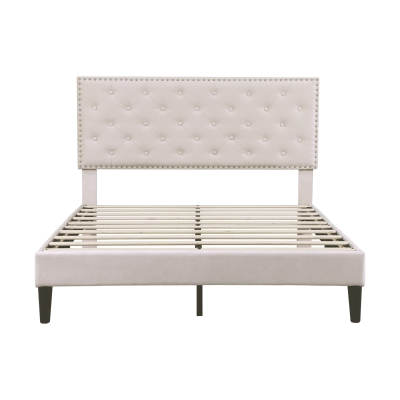 King Size LED Hydraulic Bed with Charging Station, Adjustable Tufted Headboard, Space-Saving Design for Bedroom, 206L x 151W x 105H cm, Beige