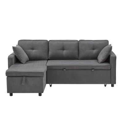 L-Shaped Convertible Sofa Bed with Reversible Chaise, Storage, Sleeper Sofa Ideal for Space-Saving Rooms, 196L x 126W x 79H cm, Grey