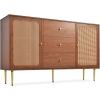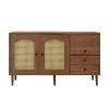 Vintage Finish Rattan Sideboard Cabinet with Storage Drawers, Wooden Chest of Drawers for Bedroom and Hallway, 120x40x90 cm, Walnut