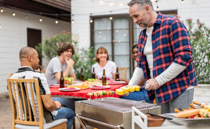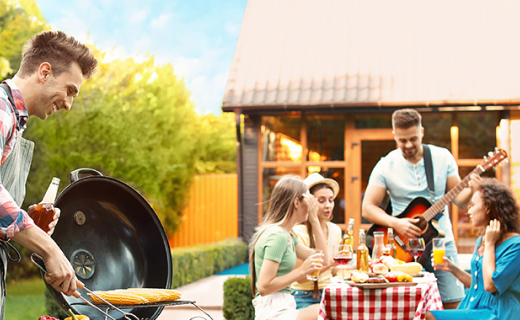 Set against a sleek backdrop, this outdoor dining space shines with twinkling lights and cosy accents. Perfect for intimate dinners or vibrant gatherings under the stars.