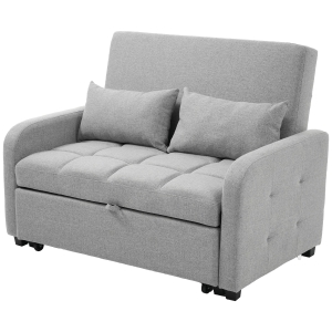 2 Seater Sofa Bed with Cup Holders, Convertible Fabric Sofa Chair with Adjustable Backrest and Storage Pockets, 140L x 96W x 97H cm, Gray