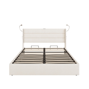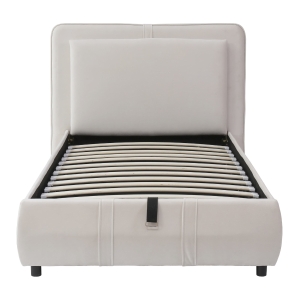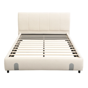 4ft6 Upholstered Double Bed with Durable Frame, Soft Headboard, Sturdy Slats, Velvet Bed for Adults, Teenagers, 213L x 152W x 89H cm, White