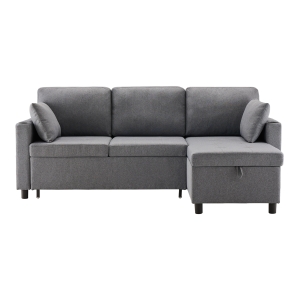 Convertible Sofa Bed with Adjustable Backrest, Sherpa Fabric, Gold Legs, Loveseat with Side Storage Pockets, 176L x 64W x 75H cm, White
