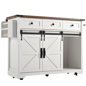 Elegant Kitchen Island with Extendable Worktop, Smooth Wheels, Ample Storage, Foldable Cabinet Ideal for Kitchen, 140L x 45W x 94H cm, White