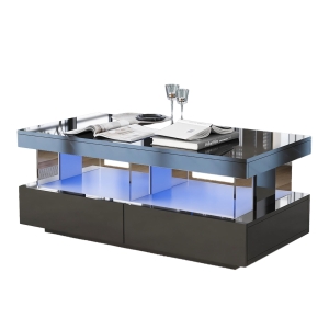 High-Gloss Black Coffee Table with Tempered Glass Top and LED Lighting, Tea Table Perfect for Modern Elegance, 90L x 50W x 32.5H cm, Black