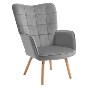 HOMCOM Modern Accent Chair, Upholstered High Back Armchair with Tufted Wingback, Seat Padding, Velvet Leisure Lounge Bedroom Chair with Wood Legs, Grey