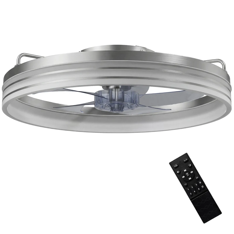 HOMCOM Ceiling Fans with Lights and Remote & App Control, 50cm LED Ceiling Fan Light with 3 Colour Temperatures, 6 Speed, Silver