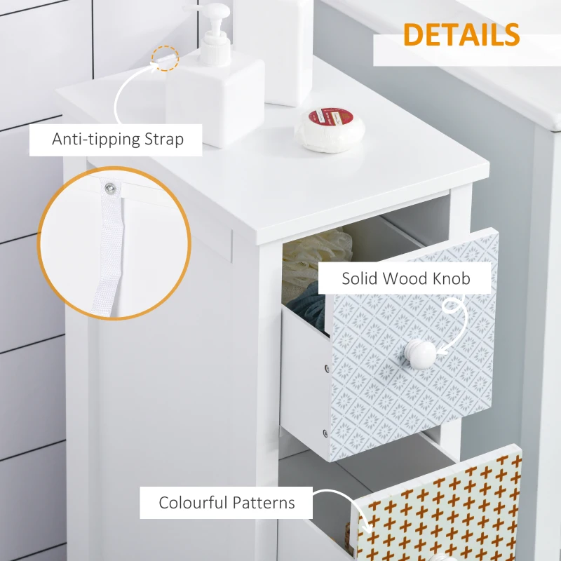 HOMCOM Chest of Drawers, 4 Drawer Dresser, Storage Organizer Toilet Tissue Cabinet for Bedroom, Bathroom