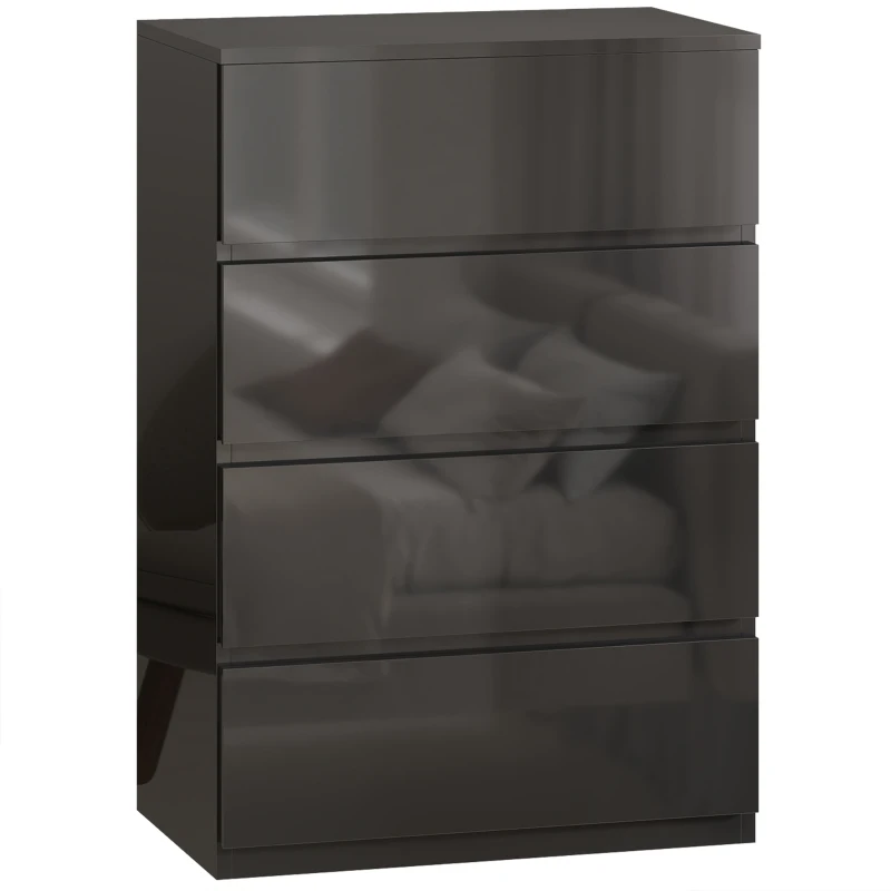 Fresh, spacious and simple, this HOMCOM chest of drawers is the only way to keep your clothes stored and organised. It comes with four drawers, so there's plenty of space for keeping a variety of clothes and more stored. Look to its high gloss finish for style - the colour is versatile, so it can be matched with other colours easily. A handle-less design creates a sleek, modern look with smooth drawer operation.