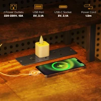HOMCOM LED Computer Desk, with Power Outlets and Shelves - Rustic Brown