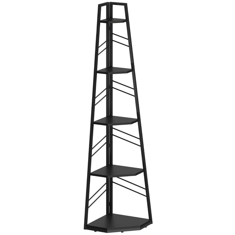 HOMCOM Corner Bookcase, 5-Tier Floor Standing Bookshelf, Shelving Unit for Living Room, Study, Bedroom, Black