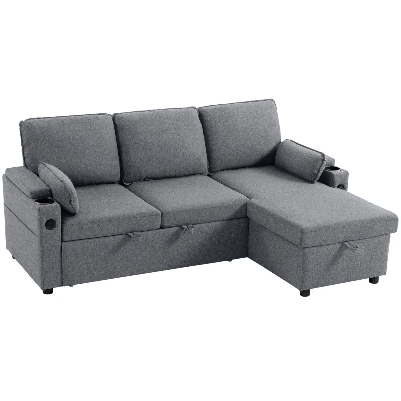 HOMCOM Corner Sofa Bed, L Shaped Sleeper Sectional Sofa with Reversible Storage Chaise, Grey