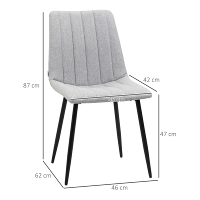 HOMCOM Dining Chairs Set of 2, Modern Kitchen Chairs with Linen-touch Upholstery and Steel Legs for Living Room, Bedroom, Grey
