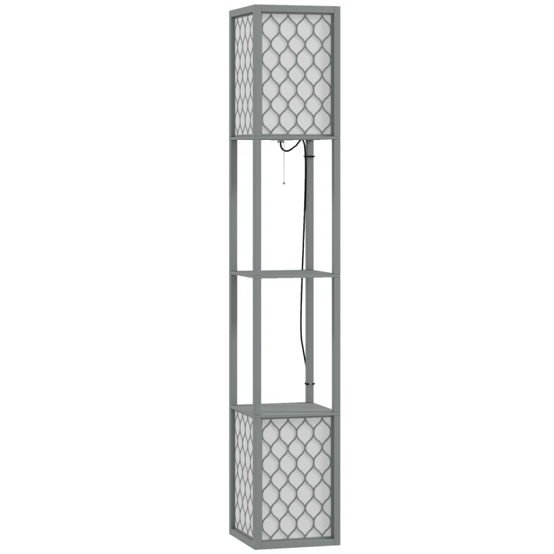 HOMCOM Floor Lamp with Shelves, Dual Light, Modern Tall Standing Lamps, with Pull Chain Switch (Bulb not Included), Light Grey