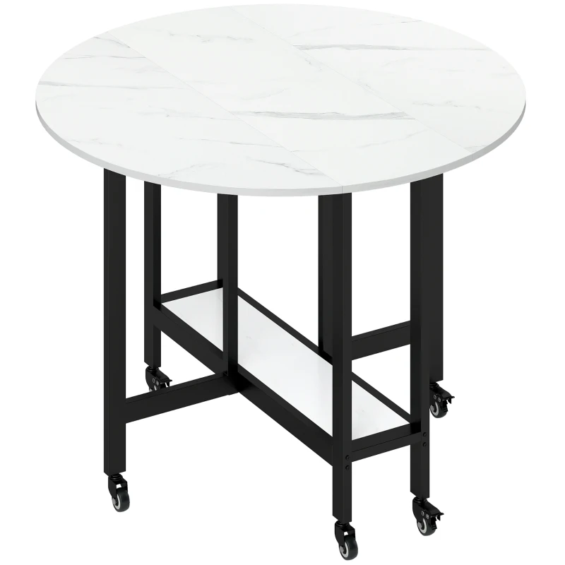 HOMCOM Folding Dining Table, Drop Leaf Table with Open Shelf, Rolling Kitchen Table for Dining Room, Small Spaces, White Marble