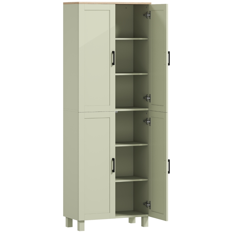 HOMCOM Freestanding Kitchen Cupboard, 4-Door Storage Cabinet with Adjustable Shelves, Modern Kitchen Pantry, 170cm, Green
