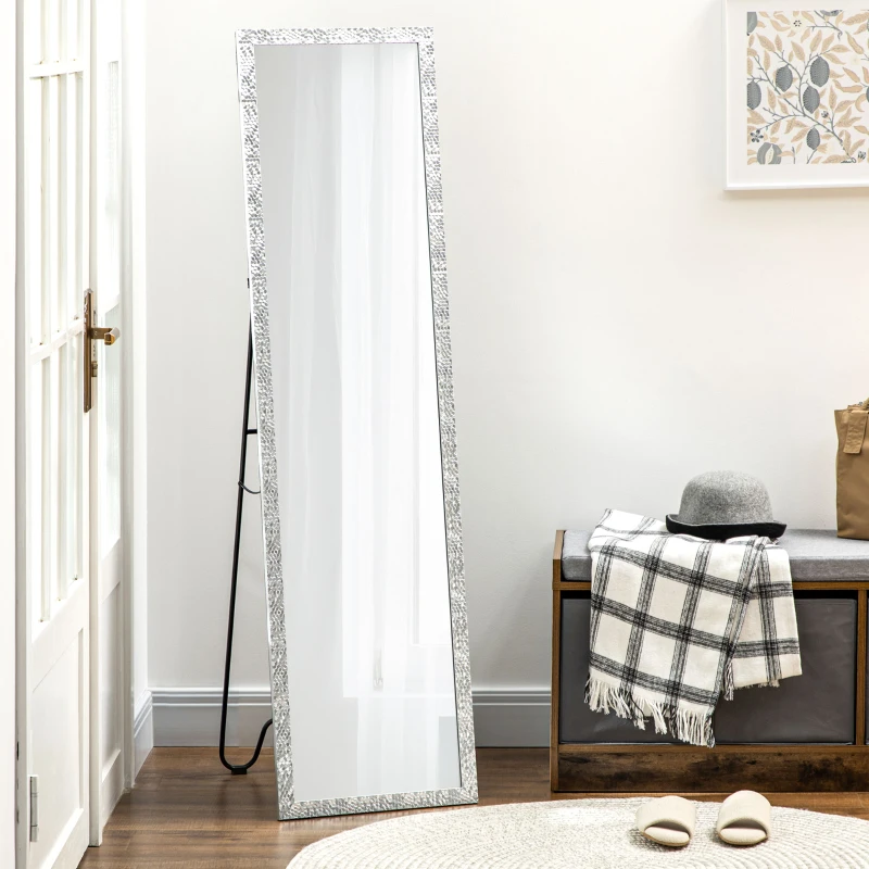 HOMCOM Full Length Mirror Free Standing Mirror Dressing Mirror with PS Frame Modern Wall Mirror for Living Room and Bedroom 34 x 144cm, Silver