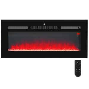 HOMCOM Led Wall Mounted Fireplace Curved Glass Electric Fire Place Fire Place 7 Colour Side Lights Slimline, 1000/2000W, 89.2cm x 48cm