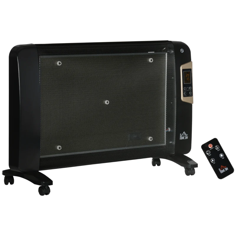 HOMCOM Mica Electric Space Heater, Portable Heater for Home with 2 Heat Settings, Living Room, Study, Garage, Adjustable Temperature 18-30°C, 1000W/2000W, Black