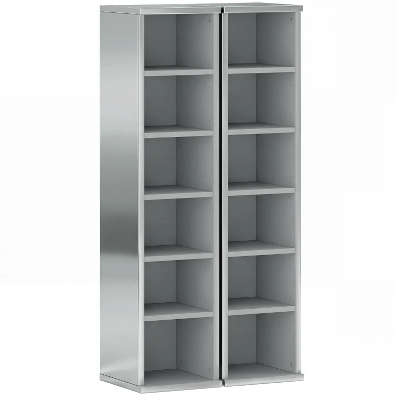 HOMCOM Set of 2 CD Media Display Shelf Unit Tower Rack with Adjustable Shelves, High Gloss Grey