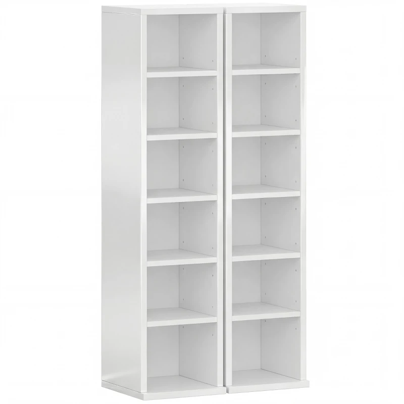HOMCOM Set of 2 CD Media Display Shelf Unit Tower Rack with Adjustable Shelves, High Gloss White