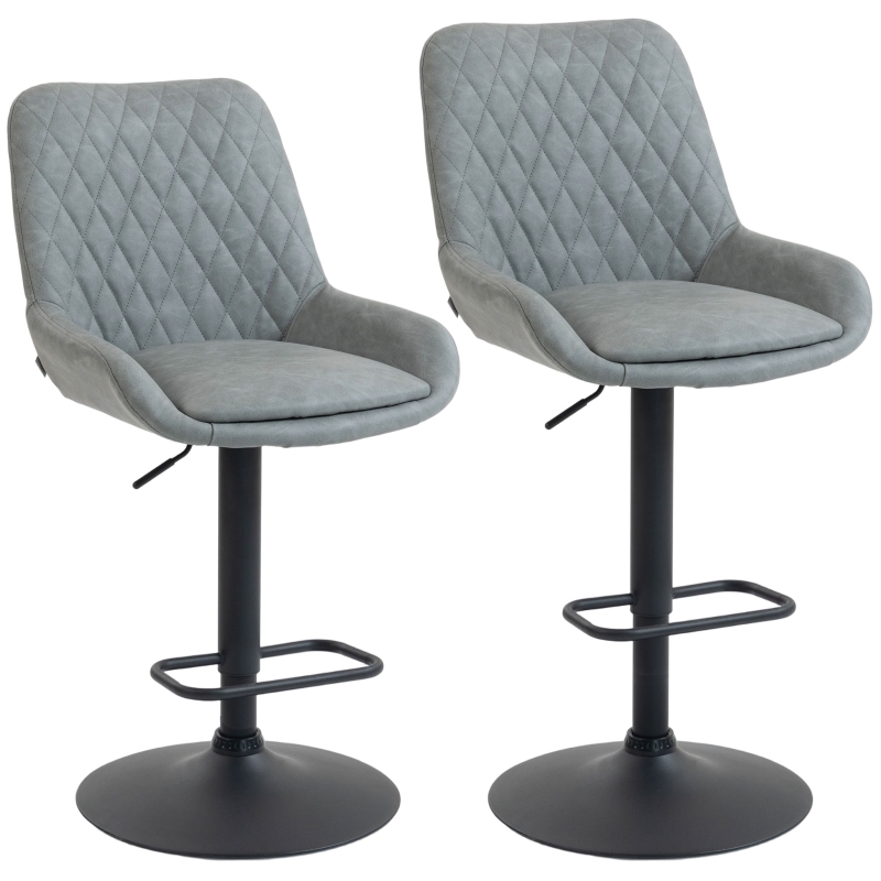 HOMCOM Set of Two Faux Leather Retro Bar Stools - Light Grey