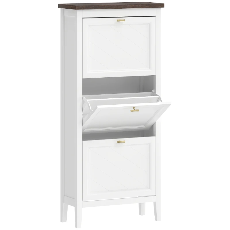 HOMCOM Shoe Cabinet with 3 Flip Drawers, Farmhouse Narrow Shoe Storage Cabinet with Adjustable Shelves, White