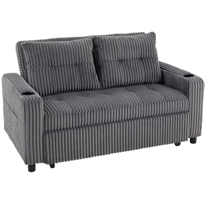 HOMCOM Two-Seater Linen-Look Sofa Bed - Charcoal Grey