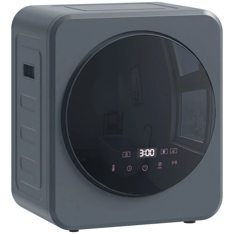 HOMCOM Vented Tumble Dryer, 4kg Front Tumble Dryer with Stainless Steel Tub, 800W Compact Freestanding Grey
