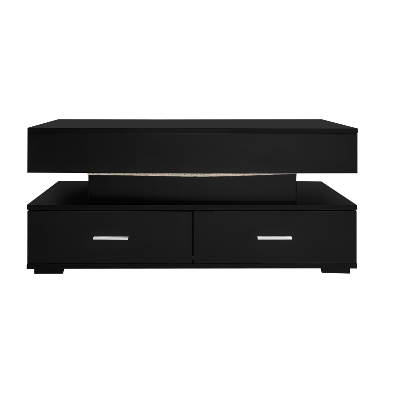 Hydraulic Lift Top Coffee Table with LED Lighting, 2 Drawers and Storage Space, 100L x 50W x 44H cm, Black