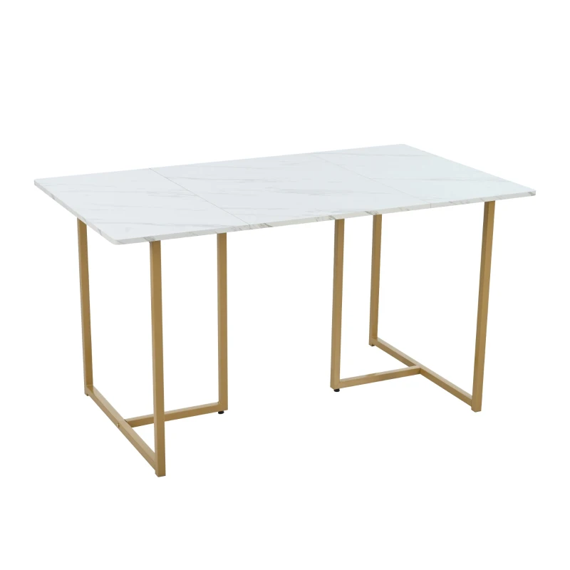 Modern Rectangular Extendable Dining Table with Adjustable L-shaped Support Legs, Marble Pattern Top, Table for Dining Room Living Room, 140x80x75 cm, White/Gold