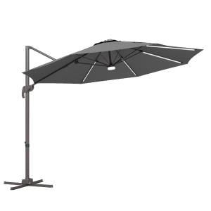 Outsunny 2.5m Cantilever Parasol with Solar Powered LED Lights, 360° Rotation, Tilt Adjustment, Crank Handle, Dark Grey