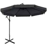 Outsunny 2.7m Garden Banana Parasol Cantilever Umbrella with Crank Handle and Cross Base for Outdoor, Hanging Sun Shade, Black