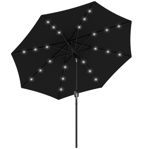 Outsunny 2.7m Outdoor Patio Garden Umbrella Parasol with Tilt Crank and 24 LEDs Lights, Black