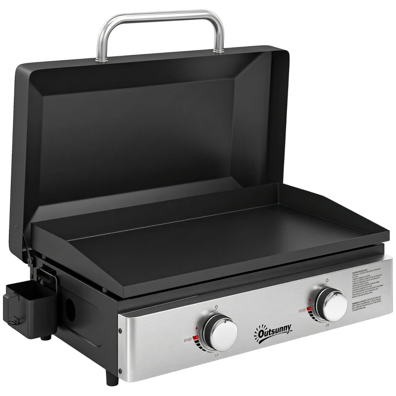 Outsunny 2 Burner Grill Griddle, Portable Gas Plancha, 6 kW, Tabletop Gas BBQ with Grease Cup for Camping Picnic Patios, Black